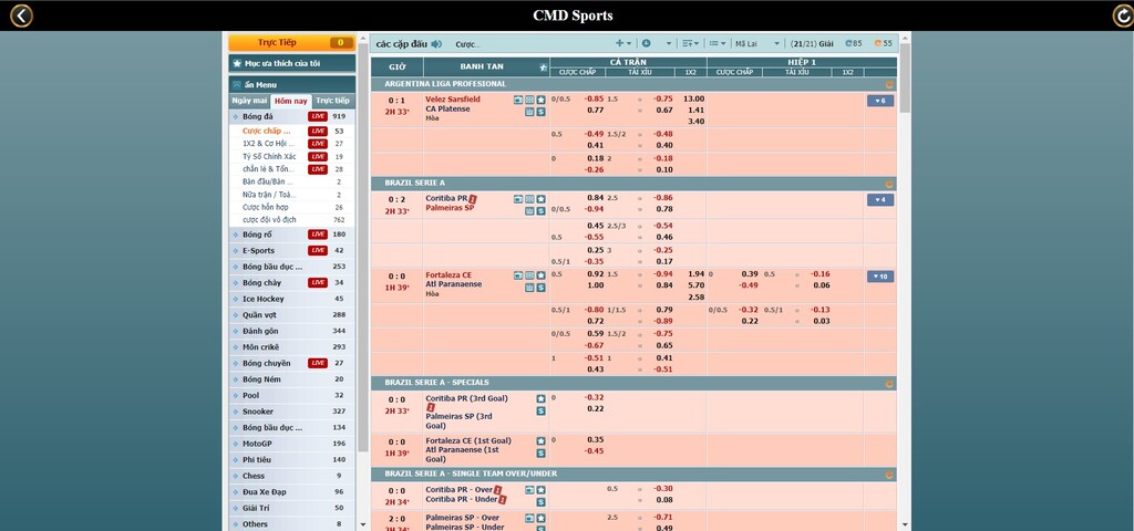 Hiện tại, CMD đang là sảnh cá cược thể thao ghi nhận số lượng người tham gia chơi cao nhất tại nhà cái. Một phần vì danh tiếng của đơn vị phát hành nhưng phần lớn là nhờ vào các ưu điểm nổi bật tại đây. Trong đó, tốc độ cập nhật kèo cược nhanh chóng là điểm cộng lớn của sảnh chơi này.