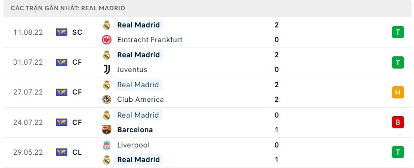 Phong độ gần đây Real Madrid