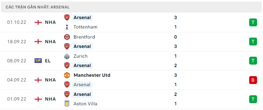 Phong độ gần đây Arsenal