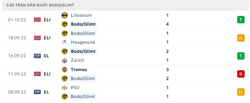 Phong độ gần đây Bodo Glimt