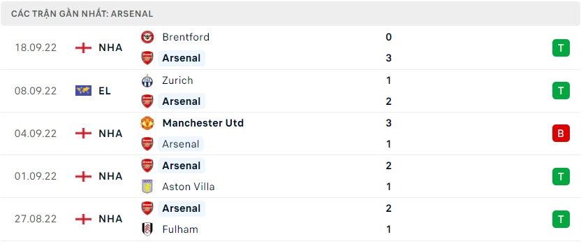 Phong độ gần đây Arsenal