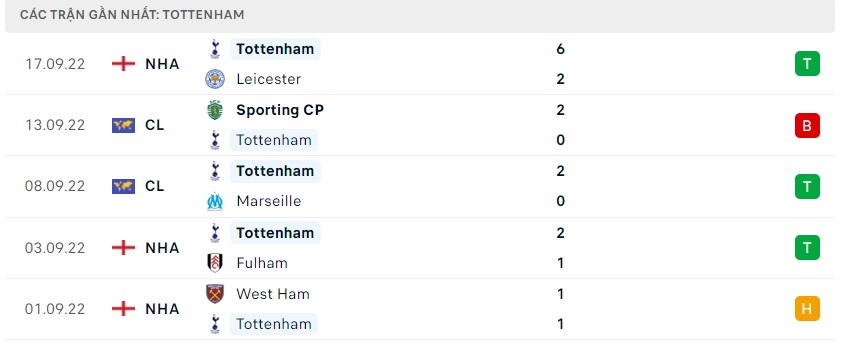 Phong độ gần đây Tottenham