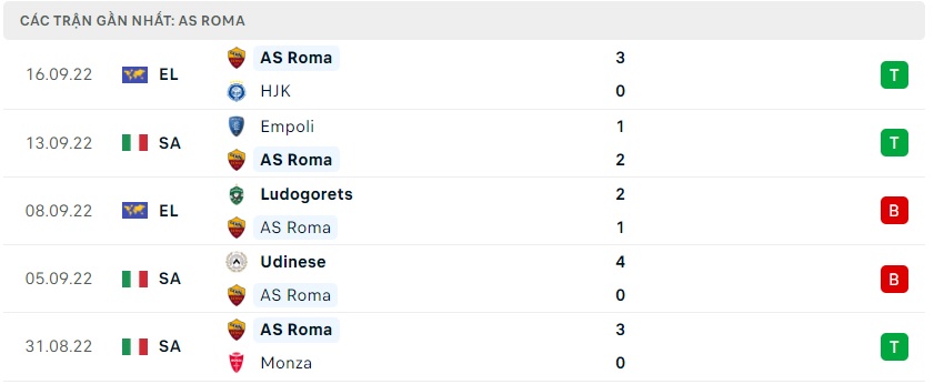 Phong độ gần đây AS Roma