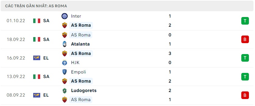 Sau thất bại 1-2 trên sân Ludogorets Razgrad ở vòng đầu tiên thì AS Roma đã tìm lại niềm vui cho mình với chiến thắng 3-0 trước HJK Helsinki, trận thắng này giúp AS Roma tạm thời vươn lên được vị trí thứ 2 của bảng xếp hạng hiện tại với 3 điểm đang có được. Tuy nhiên thầy trò HLV Mourinho cần phải quyết tâm hơn nhiều để có thể vượt qua được vòng bảng khi mà sự cạnh tranh của các đội bóng vẫn còn rất quyết liệt.