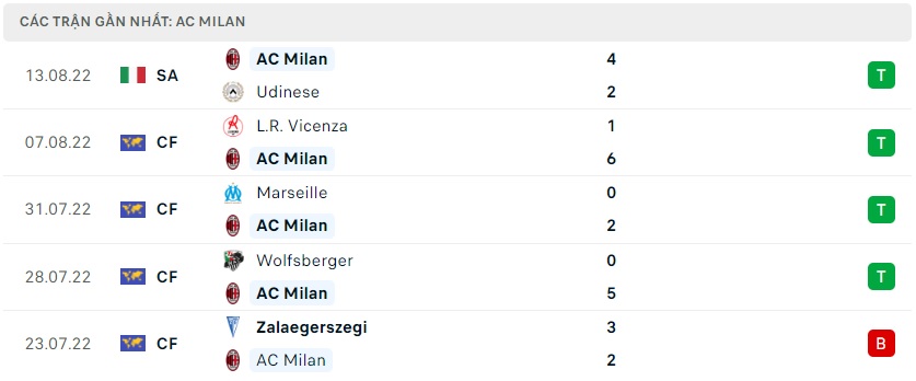 Còn với AC Milan họ chứng minh được sức mạnh của mình để ngược dòng đánh bại Udinese 4-2 trên sân nhà ở vòng đầu tiên, sức mạnh của AC Milan hiện tại không hề bàn cải bởi họ là nhà vô địch Serie A mùa trước, một điểm đáng lo với nửa đỏ thành Milan là khả năng phong ngự đang có những vấn đề nhất định, 2 bàn thua phải nhận trước đối thủ không quá mạnh cũng đã minh chứng điều này.