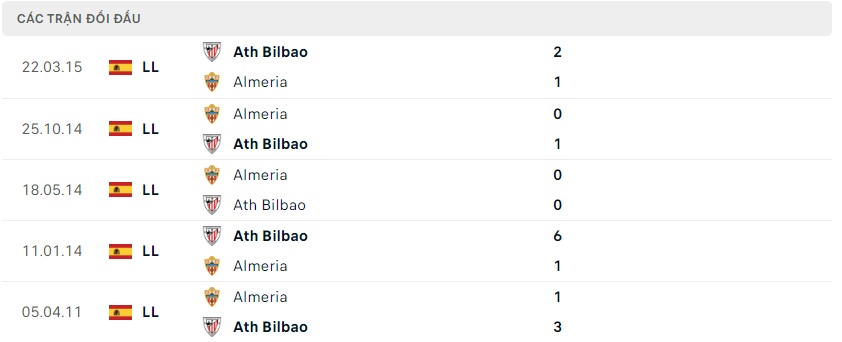 Thành tích đối đầu Athletic Bilbao vs Almeria