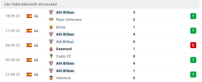 Phong độ gần đây Athletic Bilbao