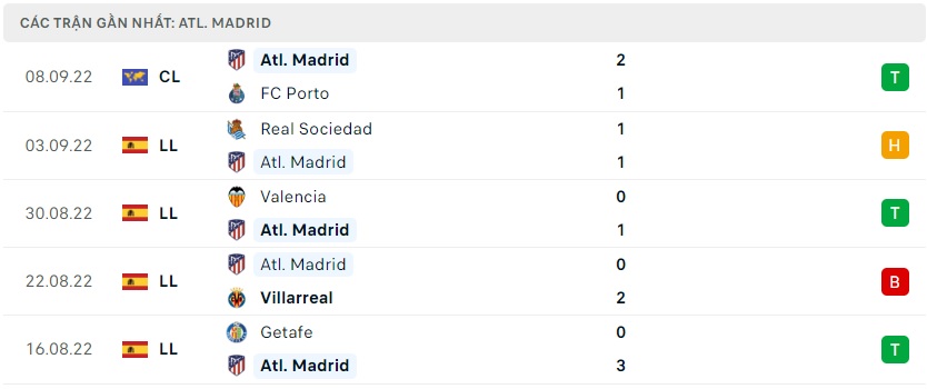 Phong độ gần đây Atletico Madrid