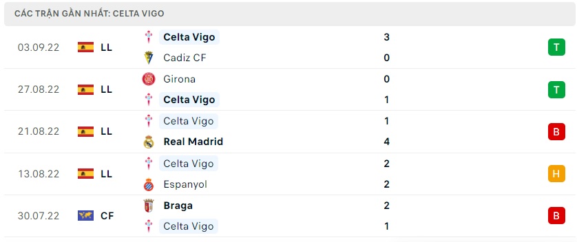 Phong độ gần đây Celta Vigo