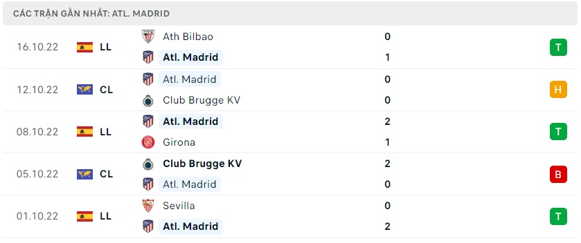 Phong độ gần đây Atletico Madrid