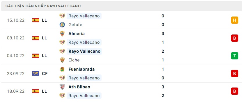 Phong độ gần đây Rayo Vallecano