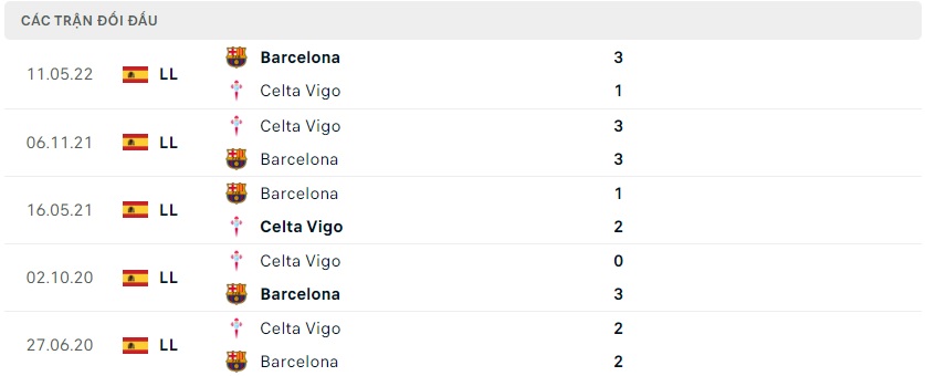 Thành tích đối đầu Barcelona vs Celta Vigo