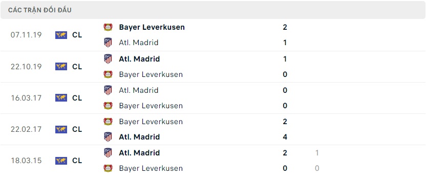 Thành tích đối đầu Bayer Leverkusen vs Atletico Madrid