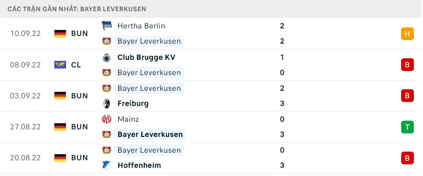 Khởi động hành trình mới mùa giải năm nay Bayern Leverkusen đã mang theo rất nhiều niềm kỳ vọng của giới chuyên gia soi keo nhà cái Bongvip, tuy nhiên đáp lại điều này chỉ là phong độ bạt nhược với vỏn vẹn 1 chiến thắng 1 trận hoà và 6 thất bại trong 8 lần ra quân gần nhất. Đáng lo ngại hơn thì trên hành trình này thầy trò HLV Gerardo Seoane chỉ thắng 1 và nhận lại đến 7 thất bại kèo châu á, vì vậy dưới góc độ đầu tư thì giới mộ điệu có nhiều hơn một lý do để e ngại Bayer Leverkusen dù có lợi thế sân bãi.