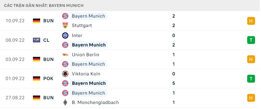 Phong độ gần đây Bayern Munich
