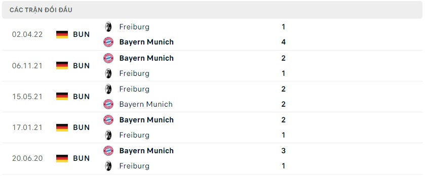 Thành tích đối đầu Bayern Munich vs Freiburg