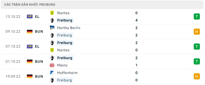 Phong độ gần đây Freiburg