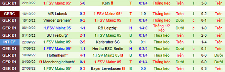 + Bong vip soi tỷ lệ kèo châu Á (0:2): Xét về TLCA, thì đội Mainz hiện đang nắm giữ thành tích khá ấn tượng khi chiến thắng kèo với 4 trận liên tiếp gần đây. Trong tổng 3 lần chạm trán mới nhất với đội bóng Bayern Munich thì Mainz cũng là đội chiến thắng và những người mang về niềm vui cho các nhà đầu tư châu Á. Chọn: Mainz.