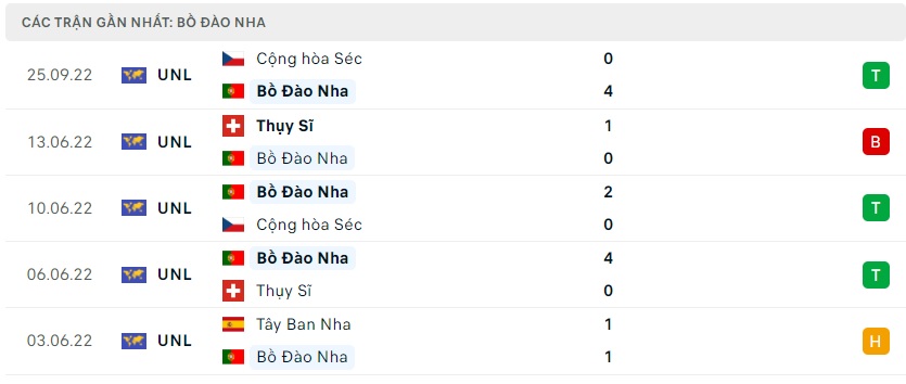 Phong độ gần đây Bồ Đào Nha