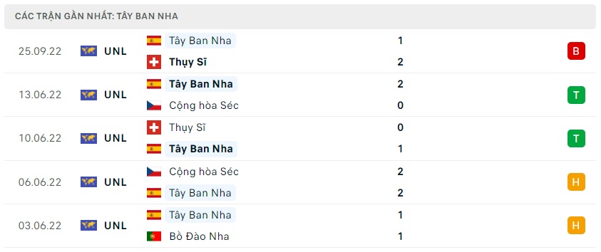 Phong độ gần đây Tây Ban Nha