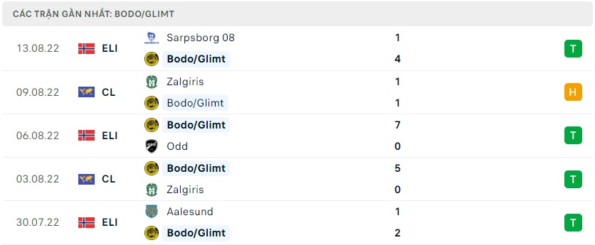 Phong độ gần đây Bodo Glimt