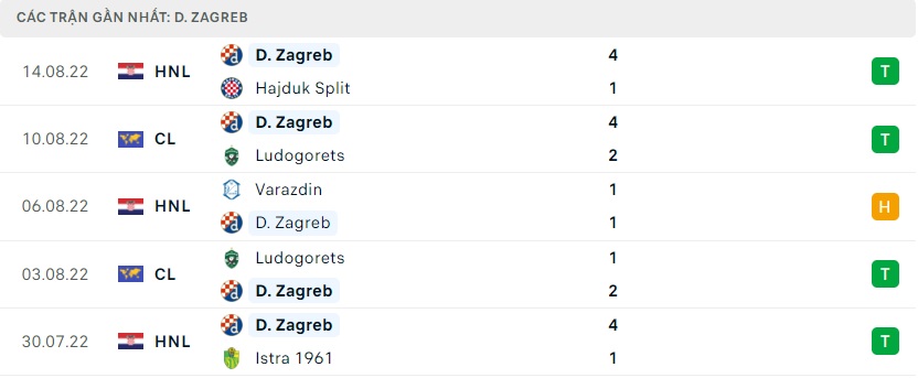 Phong độ gần đây Dinamo Zagreb