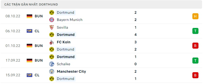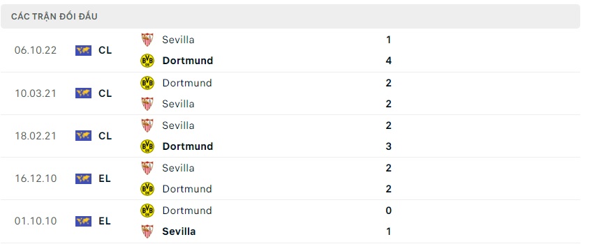 Thành tích đối đầu Borussia Dortmund vs Sevilla