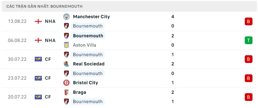 Phong độ gần đây Bournemouth