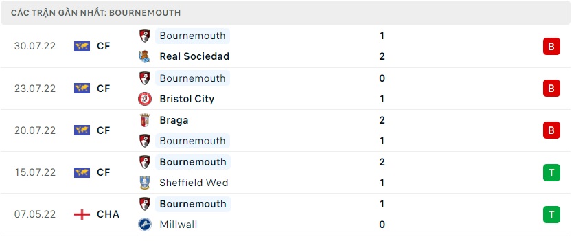 Phong độ gần đây Bournemouth