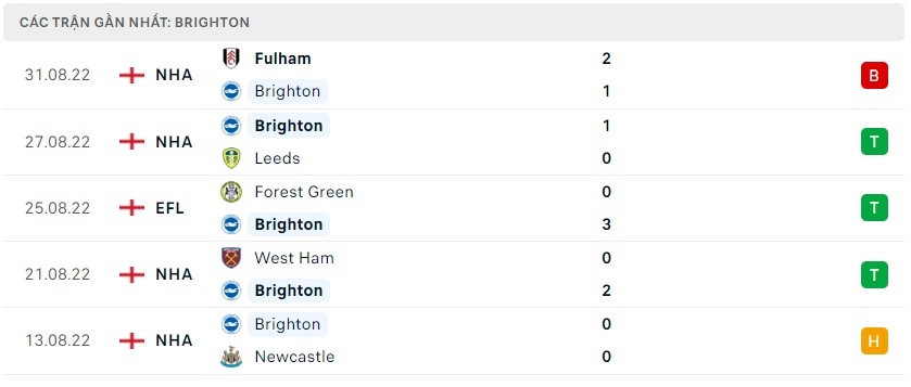 Phong độ gần đây Brighton
