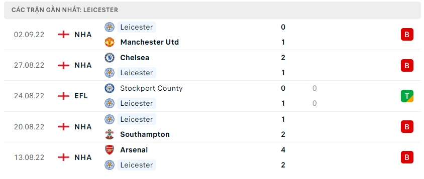 Phong độ gần đây Leicester City