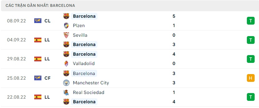 Phong độ gần đây Barcelona