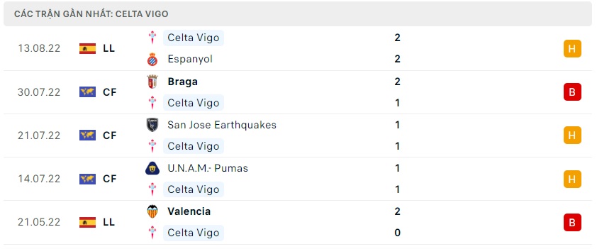 Phong độ gần đây Celta Vigo