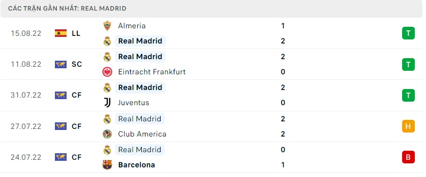 Phong độ gần đây Real Madrid