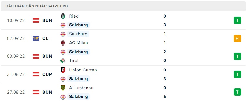 Phong độ gần đây Salzburg