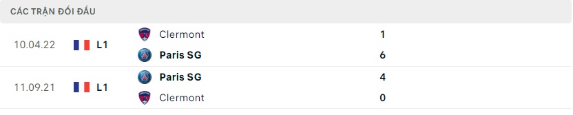 Thành tích đối đầu Clermont vs Paris Saint-Germain