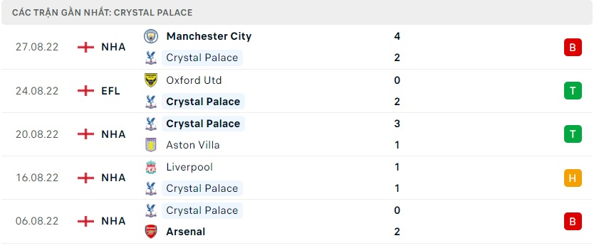 Phong độ gần đây Crystal Palace