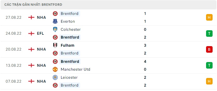 Phong độ gần đây Brentford
