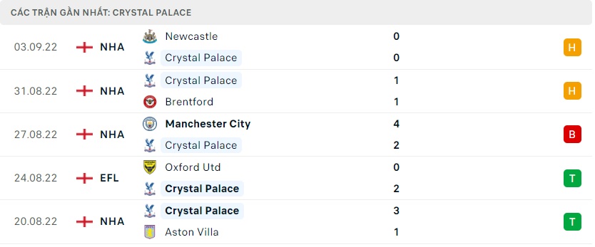 Phong độ gần đây Crystal Palace