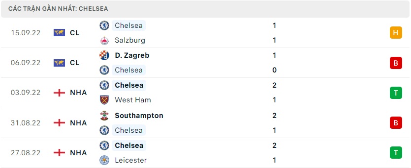 Phong độ gần đây Chelsea