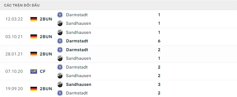 Giữa hai đội trong quá khứ có thể thấy được sự chênh lệch với nhau là không quá lớn, Sandhausen để thua 3 thì cũng đã thắng 2 trước Darmstadt trong 10 trận gặp nhau, đáng kể tới là khả năng cầm chân nhau của hai đội cũng sẽ là rất lớn khi mà có tới 5 trong 10 trận đối đầu đã khép lại với khả năng bất phân thắng bại của hai đội.