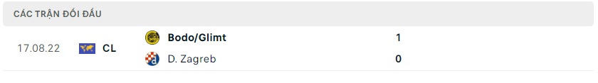 Thành tích đối đầu Dinamo Zagreb vs Bodo/Glimt