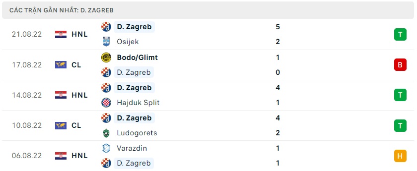 Phong độ gần đây Dinamo Zagreb