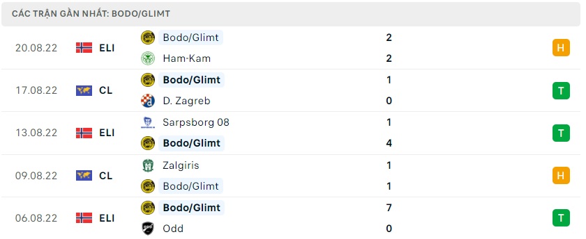 Phong độ gần đây Bodo/Glimt