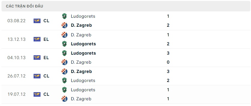 Thành tích đối đầu Dinamo Zagreb vs Ludogorets
