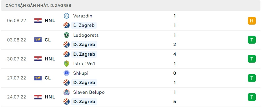 Phong độ gần đây Dinamo Zagreb
