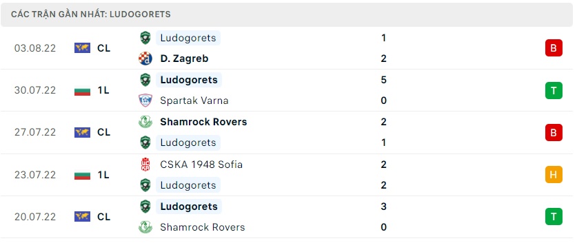 Phong độ gần đây Ludogorets