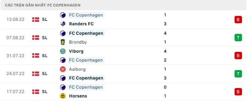 Phong độ gần đây FC Copenhagen
