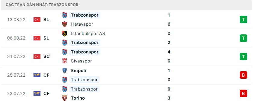 Phong độ gần đây Trabzonspor