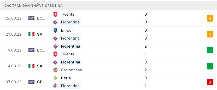 Phong độ gần đây Fiorentina